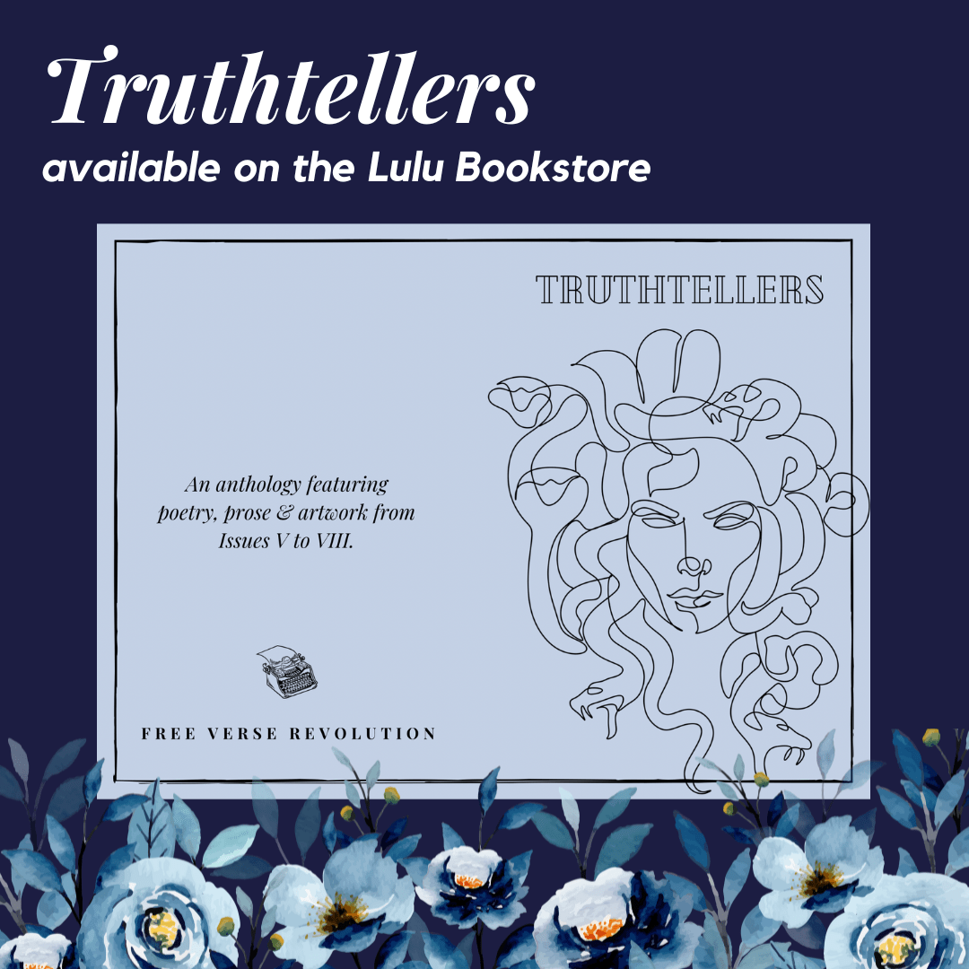 I am honoured to have my poem, ‘For Hilary, Elizabeth, the 1-in-20’ included in the stunning Truthtellers anthology from Free Verse Revolution, which is available now from the Lulu Bookstore. The book is a showcase of some of the best work from the 2022 issues of the literary magazine.