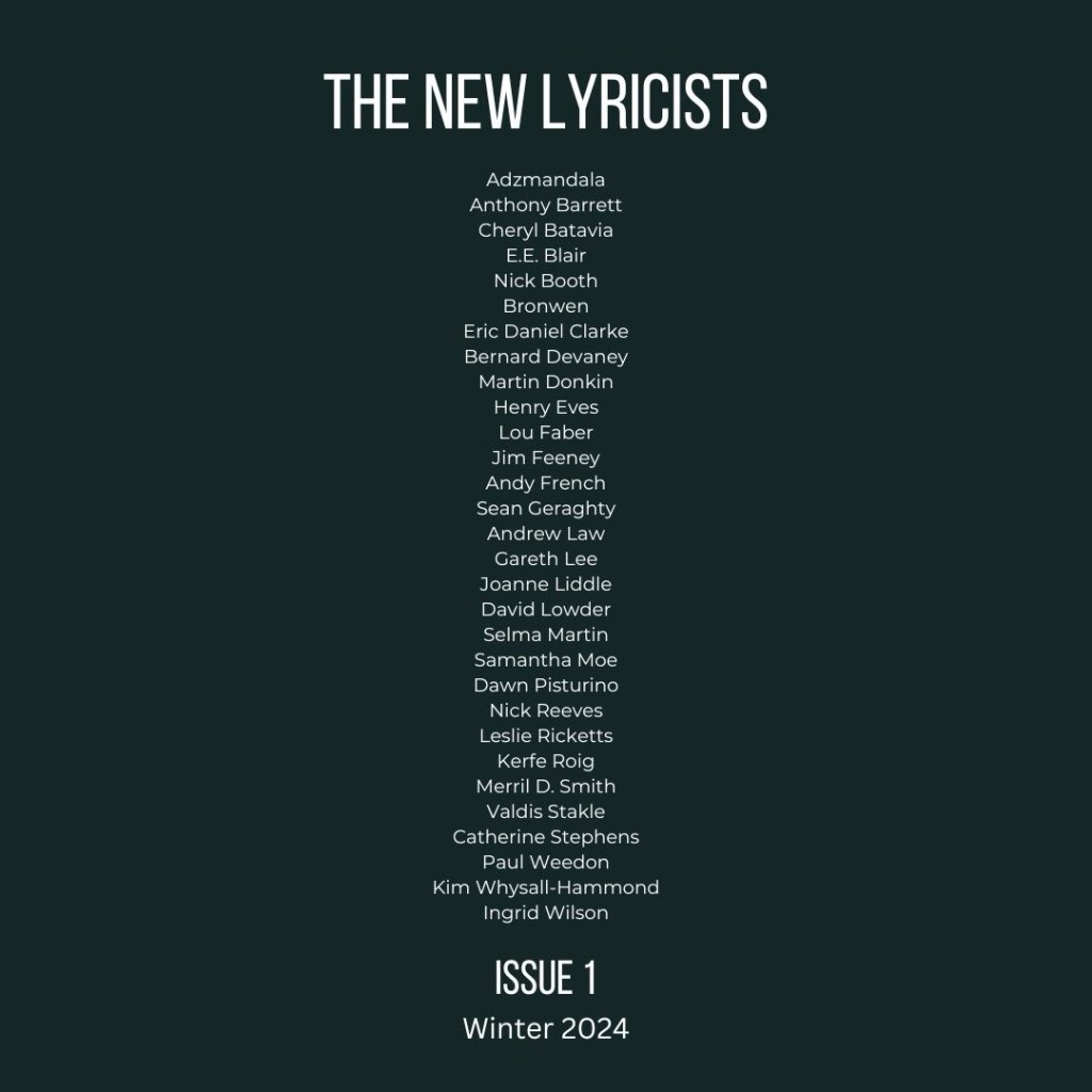 A huge thank you, and congratulations, to all of our contributors, and to all who have supported the project. New Lyricist is now available from the Lulu bookstore.
