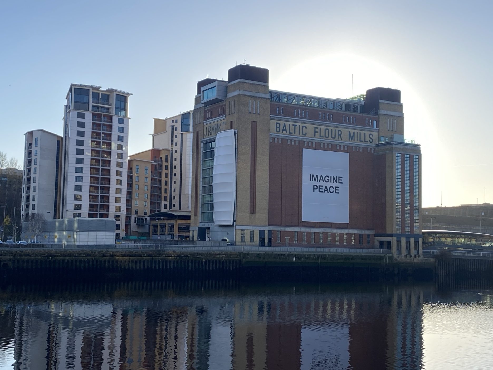 Upon arriving in South Shields, it was first necessary reach the starting point of the walk: the North Sea, where we would dip our boots ceremonially to mark the beginning of the adventure, after posing for obligatory photos in the eye sculpture, emblazoned with the lyrics to ‘Blow the wind southerly.’