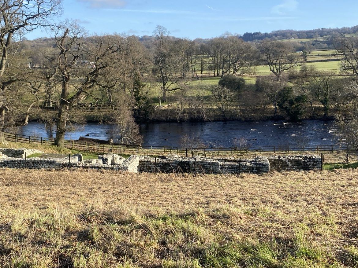 Our first glimpse of surviving (reconstructed) Roman Wall was at Planetrees, whose miraculous survival (at a time when the stones were being plundered to build nearby farmhouses and churches) enables us to see the exact spot where the Broad Wall was narrowed, and continued along a narrower design, to its western limit. See previous post to learn more about this. Though our route passed Brunton Turret (with an intact stretch of Wall) and the original Roman bridge abutment at Chollerford, time being of the essence, we pressed on to Chesters (Cilurnum) Roman Fort to ensure we had time to explore this extensive site.